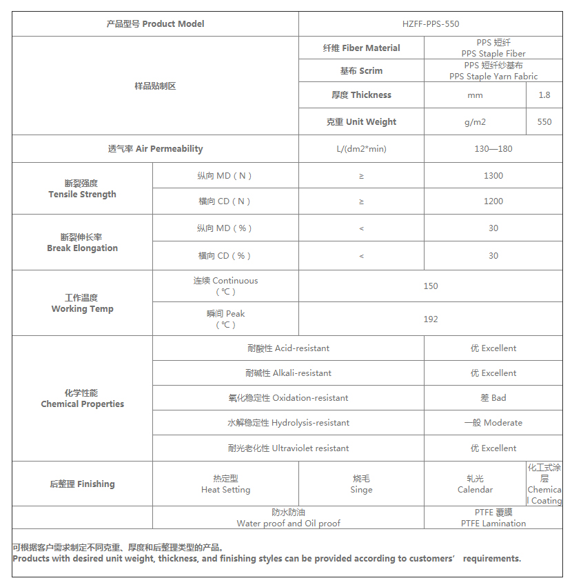 材質(zhì):PPS纖維+PPS基布