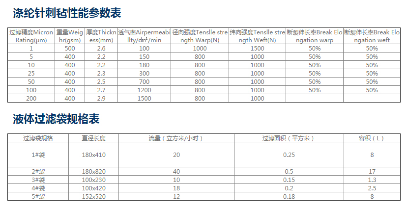 滌綸(PE) 滌綸在常溫下有很好的使用性能,是袋濾器中的主力濾料。可在干燥條件下經(jīng)受130℃的操作溫度;連續(xù)在130℃以上工作會變硬;退色;發(fā)脆,溫度也會使其強度變?nèi)?。滌綸化學穩(wěn)定性好,能耐大多數(shù)酸堿的侵蝕。常溫下不溶于一般溶劑,吸水性小,此外電絕緣性和抗沖擊性及耐寒性能很好。過濾精度范圍在1-200um 。