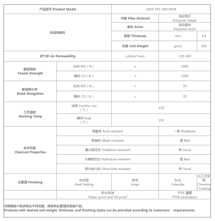 *所述滌綸亦可與丙綸、亞克力等中低溫材料混合針刺使用
